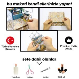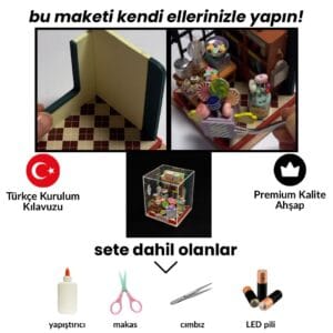Kahve Zamanı | Kendin Yap Minyatür Kafe Seti Kendin Yap Maket Seti: Kahve Zamanı Kahve molasının en keyifli hali şimdi Kahve Zamanı ile sizin ellerinizde hayat buluyor! Bu büyüleyici kendin yap (DIY) minyatür kafe modeli, şık detayları ve zarif dekorlarıyla evinize sıcak bir atmosfer katacak. Ahşap masa ve sandalyeler, menü tabelaları, renkli çiçekler ve LED…