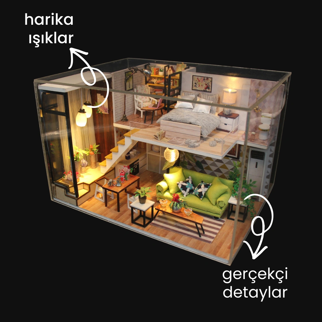 Modern Loft, hobi minyatür sanatının en zarif örneklerinden biri olup, her aşamada keyifli bir kendin yap deneyimi sunar. Bu minyatür ev modelini kendi ellerinizle inşa edin ve yaşam alanınıza modern bir dokunuş katın!